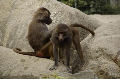 Keywords: ape zoo animal animal world two mammals rock monkeys enclosure baboons coat-baboon
