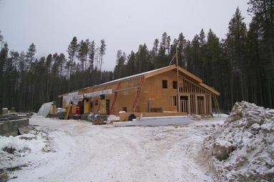Keywords: apgar transit center apgartransitcenter glacier national park glaciernationalpark nps national park service nationalparkservice montana construction building leed leed gold leedgold leed certified leedcertified us green building council usgreenbuildingcouncil transportation architecture chalet outdoor cabin snowbank snow Construction of the Apgar Transit Center - 2007. Photo: David Restivo, NPS Construction of the Apgar Transit Center - 2007. Photo: David Restivo, NPS