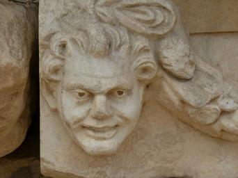 Keywords: aphrodisias antique antiquity temple sculptor temple complex places of interest tourism roman historically image fig head man face relief mimic stone eyes nose mouth portrait smile friendly