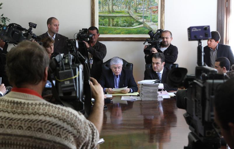 Keywords: Presidente Valdir Rossoni (PSDB) e 1º secretário Plauto Miro (DEM) divulgam relatório sobre irregularidades nas aposenatorias da Assembleia. Foto: Nani Gois (crédito obrigatório)