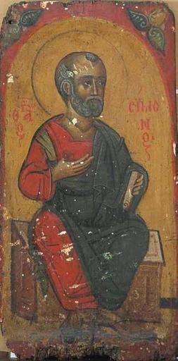 | Keywords: Apostol Simon-Sv.Gorgi-Struga.jpg en Icon of Apostle Simon sixth or seventh decade of the 15 th century in St George church in Struga Macedonia http //www kalamus com mk/pdf_spisanija/patrimonium_3/021 20- 2025 20Spisanie 202010 20VIKI 2005 20ok pdf Ох идско-ст ушки иконописни т аги од вто ата половина на 15 век author century 15 PD-Macedonia Icons in St George's Church Struga Paintings of Saint Simon | ||||