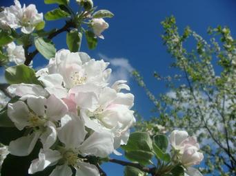 Keywords: apple bloom apple blossoms spring apple flower flowering tree blooming apple tree white color apple tree garden gardening