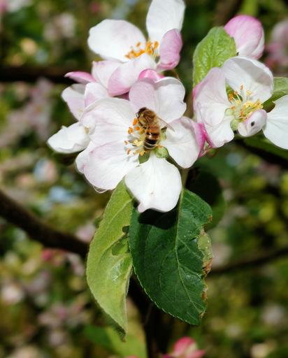 Keywords: apple blossom apple tree blossom bloom bee pollination close apple