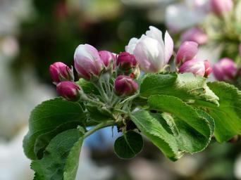 Keywords: apple blossom apple tree blossom bloom white pink road leaves malus kernobstgewaechs large rose greenhouse rosaceae