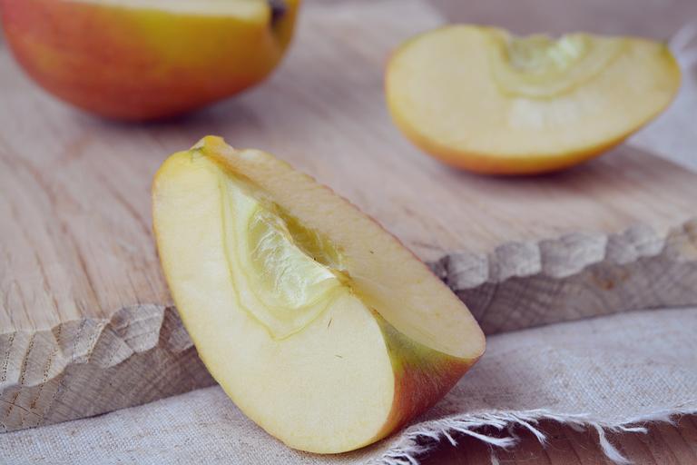 Keywords: apple piece of apple cut piece fruit bio apple bio delicious healthy sweet vitamins minerals natural product cutting board close country life