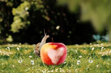 Keywords: apple snail nature meadow grass food healthy fruit shell eat nibbled on vitamins heart frisch red benefit from nutrition feed delicious bio