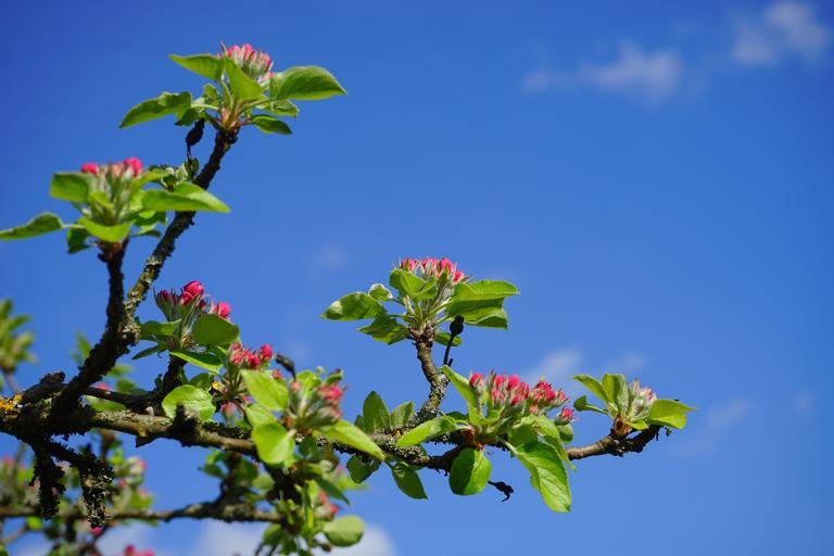 Keywords: apple tree apple blossoms flowers red go up bloom spring bud tree road second malus kernobstgewaechs large rose greenhouse rosaceae