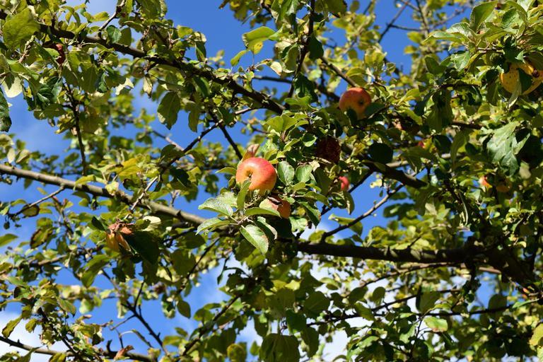 Keywords: apple tree apple tree fruit garden autumn late summer red apple harvest apfelernte frisch