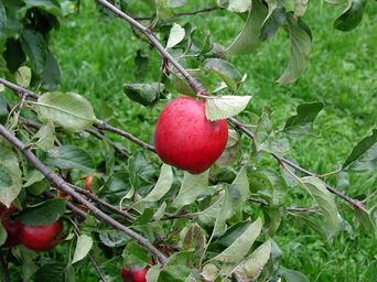 Keywords: apple tree branch fruit ripe leaves orchard