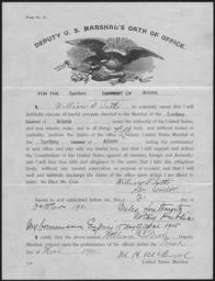 | Keywords: Appointment and Oath of Office for William O. Tuttle as Field Deputy Marshal in the Territory of Arizona. - NARA - 295880.tif Scope and content General notes 295880 Local identifier NARA's Pacific Region Riverside NRHAR 23123 Cajalco Rd Perris CA 92570 1901-11-01 Record group Record Group 527 Records of the U S Marshals Service 1864 - 1992 Record group ARC 764 Appointments and Oaths of U S Marshals and Deputy Marshals compiled 1864 - 1912 Series ARC 295651 File unit File unit ARC Variant control numbers NAIL Control Number NRHL-527-AZ1-229 yes Other versions NARA-cooperation PD-USGov Check categories-NARA 2011 September 13 Documents in English |