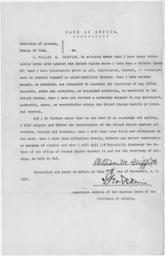 | Keywords: Appointment and Oath of Office for William M. Griffith as Marshal in the Territory of Arizona. - NARA - 295734.tif Scope and content General notes 295734 Local identifier NARA's Pacific Region Riverside NRHAR 23123 Cajalco Rd Perris CA 92570 1897-09-07 Record group Record Group 527 Records of the U S Marshals Service 1864 - 1992 Record group ARC 764 Appointments and Oaths of U S Marshals and Deputy Marshals compiled 1864 - 1912 Series ARC 295651 File unit File unit ARC Variant control numbers NAIL Control Number NRHL-527-AZ1-83 yes Other versions NARA-cooperation PD-USGov Check categories-NARA 2011 September 13 Documents in English |