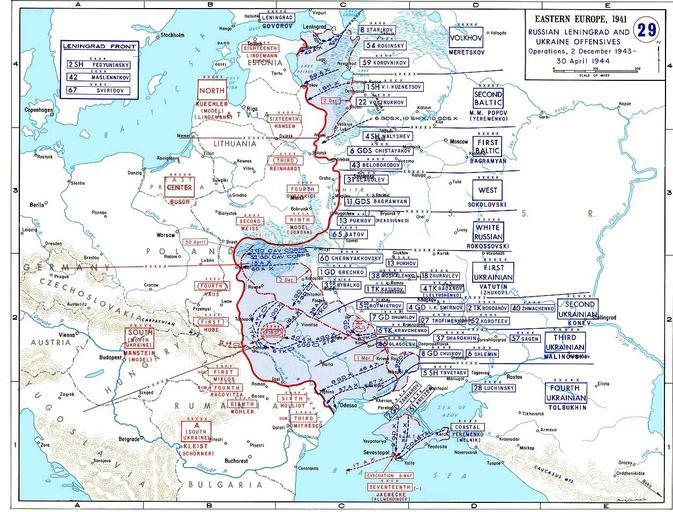 | Keywords: April1944.jpg From en-wiki Soviet Advances 2 December 1943 to 30 April 1944 Совјетска нап едовања од 2 децемб а 1943 до 30 ап ила 1944 Author - Unknown US Army Cartographer Source - The Department of History United States Military Academy http //www dean usma edu/history/ Quotation of the permission Frank Martini gave to User Redtony after he was asked for permission to use The Department of History United States Military Academy contents in the Wikipedia Tony The maps found on the web site may be used for the purposes stated below We would kindly ask that credit be given to The Department of History United States Military Academy If you reguire higher resolution images suggest you contact one od the sources cited on our site Best of luck with the project Frank Martini Cartographer Department of History United States Military Academy Webpage http //www dean usma edu/history/web03/atlases/ww2 20europe/ww2 20europe 20war 20index htm World War II File is under US Government Copyright PD-USGov Maps of the Eastern Front in World War II Maps of the United States Military Academy Maps of Ukraine in World War II |