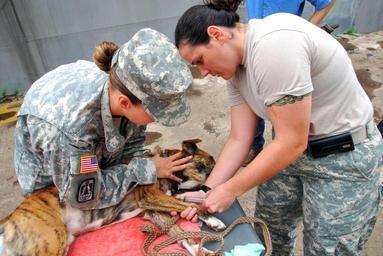 | Keywords: APS Swift Army Veterinary Team in Liberia DVIDS203986.jpg en Army veterinarian Capt Kellie J Stewart from Veterinary Command Headquarters Fort Sam Houston San Antonio Texas right and Army Staff Sgt Teresa A Sipes from South Plains District Veterinary Command Fort Hood Texas prepare a dog for minor surgery during Africa Partnership Station Swift's two-week port call in Monrovia Liberia The Soldiers are traveling throughout the country participating in the ship's two-week Medical Civil Action Project which began Sept 2 APS is an international initiative under Commander U S Naval Forces Europe-Commander U S Naval Forces Africa which aims to work cooperatively with U S European and African partners to enhance maritime safety and security on the African continent 2009-09-14 Petty Officer 1st Class Daniel Meaney https //www dvidshub net/image/203986 090914-N-+++++-001 2009-09-15 10 16 MONROVIA LR PD-USGov-Military-Navy Fort Hood Texas Images from DoD uploaded by Fæ |