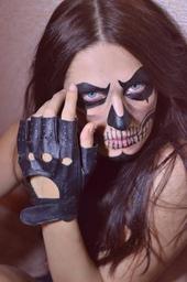 Keywords: aqua make-up photoshoot girl skull drawing on the face portrait