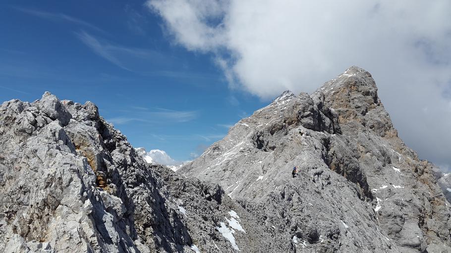 Keywords: arête ridge rock ridge zugspitze massif mountains alpine weather stone wetterstein massif ostallgäu allgäu landscape rock view height steep rocky high mountains germany austria