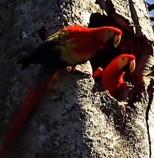 Keywords: Ara r2.jpg К асный а а Scarlet Macaws Ara macao by the entrance to their nest in a tree hole own own photo 18 сентяб я 2006 18 September 2006 Beralpo Beralpo Ara macao Tree hollow nests Birds facing right Psittacidae nests