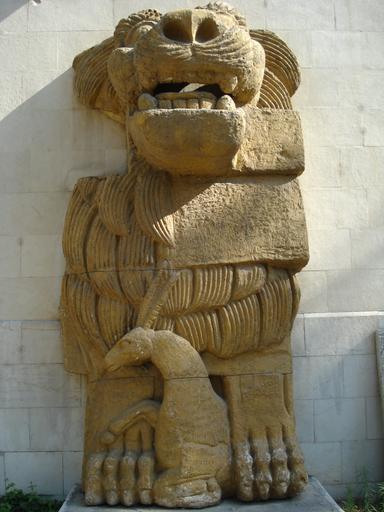 Keywords: Arabian God.JPG تمثال لأحد الألهة العربية لمرحلة ما قبل الاسلام اللات التمثال موضوع على أحد جدران متحف دمشق الوطني في حديقة المتحف own 2007 Arab people Lion sculpture National Museum of Damascus