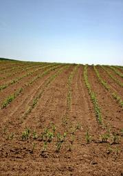 Keywords: arable field corn plant young plants green landscape nature agriculture sky soil wide earth corn plant spring grow hill