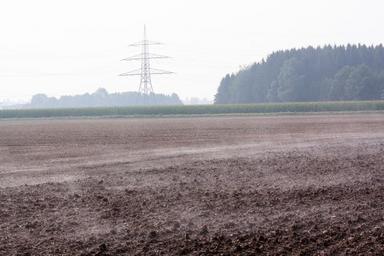 Keywords: arable field plowed harrowed fog steamy autumn forest strommast landscape colourless winter sowing
