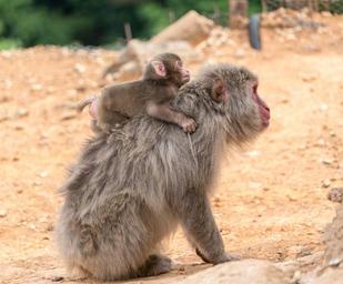 Keywords: arashiyama japan monkey park monkeys mother baby piggy back ride kyoto wild wildlife animal nature park primate mountain looking cute mammal portrait funny adorable
