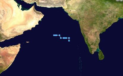 | Keywords: ARB-04 1998 track.png Track map of Deep Depression ARB 04 of the 1998 North Indian Ocean cyclone season The points show the location of the storm at 6-hour intervals The colour represents the storm's maximum sustained wind speeds as classified in the Saffir-Simpson Hurricane Scale see below and the shape of the data points represent the nature of the storm according to the legend below User Nilfanion/Tc/T Created by Cyclonebiskit using Wikipedia WikiProject Tropical cyclones/Tracks The background image is from NASA Tracking data switch source from the National Hurricane Center <sup>http //www nhc noaa gov/pastall shtml</sup> from the Central Pacific Hurricane Center <sup>http //www prh noaa gov/cphc/summaries/</sup> from the Joint Typhoon Warning Center <sup>https //metocph nmci navy mil/jtwc/best_tracks/</sup> from the Japan Meteorological Agency <sup>http //www jma go jp/jma/jma-eng/jma-center/rsmc-hp-pub-eg/besttrack html</sup> from the National Hurricane Center <sup>http //www nhc noaa gov/pastall shtml and the Central Pacific Hurricane Center http //www prh noaa gov/cphc/summaries/</sup> from the Central Pacific Hurricane Center <sup>http //www prh noaa gov/cphc/summaries/ and the Joint Typhoon Warning Center https //metocph nmci navy mil/jtwc/best_tracks/</sup> from the w National Hurricane Center <sup>http //www nhc noaa gov/pastall shtml</sup> or the Joint Typhoon Warning Center <sup>https //metocph nmci navy mil/jtwc/best_tracks/</sup> 2009-07-16 Cyclonebiskit 1998 North Indian Ocean cyclone season track maps |