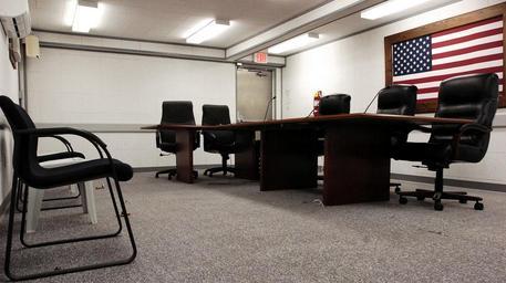 | Keywords: ARB trailer.jpg The Office of Administrative Review of Detention of Enemy Combatants board rooms house both the Annual Review Boards ARB and Combatant Status Review Tribunals CSRT for detained enemy combatants in Guantanamo Bay Cuba Conducted annually ARBs seek to determine if enemy combatants still pose a threat to the U S while CSRTs seek to determine if detainees meet the criteria to be labeled enemy combatants JTF Guantanamo photo by Navy Petty Officer 2nd Class Michael Billings http //www jtfgtmo southcom mil/storyarchive/2007/October/102907-2-oardec html 2007-10-29 Navy Petty Officer 2nd Class Michael Billings or Army Sgt Sarah Stannard PD-USGov-Military-Navy See also File Administrative Review Board hearing room jpg Guantanamo Bay detainment camp legal and administrative proceedings ImageNote 1 537 1010 149 75 2464 1380 2 Captives were shackled hand and foot to a bolt in the floor ImageNoteEnd 1 ImageNote 2 450 882 91 67 2464 1380 2 Captives were shackled hand and foot to a bolt in the floor ImageNoteEnd 2 |