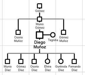 | Keywords: Árbol genealógico de Diego Muñoz.jpg Origenes familiares y descendencia del conde Diego Muñoz de Saldaña Referencias Martínez Díez Gonzalo 1995 «La familia condal de Carrión» Actas del III Congreso de Historia de Palencia vol 2 Montenegro Valentin Julia 1985 «En torno a los orígenes familiares de Diego Muñoz el Primer Conde de Saldaña» Actas del I Congreso de Historia de Palencia vol 2 Torre Sevilla-Quiñones de León Margarita Cecilia 1985 Linajes nobiliarios de León y Castilla Siglos IX-XIII own Truor Family trees of Spain Banu Gómez |