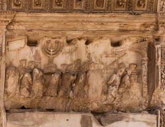 Keywords: Arc Titus Forum romanum Rome Italy.jpg en Reliefs at the Arch of Titus Forum romanum Rome Italy fr Bas-relief sur l'arc de triomphe de Tituts commémorant la prise de Jérusalem Forum romain Rome Italie 2013-08-22 own Jebulon other versions 41 890694 12 488573 cc-zero Arch of Titus Rome - Jerusalem treasure relief Quality images by Jebulon Quality images of Rome QualityImage