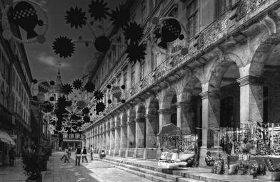 Keywords: arcade arcades bows support columns light shadow penumbra the sun heat architecture symmetry brackets the pillars of the siesta the prospect of black and white