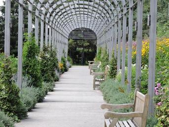 Keywords: arcade garden pavement bench design art flowers