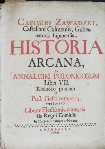 | Keywords: ArcanaHistory.jpg ru Книга Kazimierz Zawadzki «Historia arcana seu annalium polonicorum » «Тайная исто ия или польские анналы » изданная во Ф анкфу те 1699 http //www pbi edu pl/book_reader php p 51797 Kazimierz Zawadzki 1699 PD-old-100 1699 books 1699 in Poland |