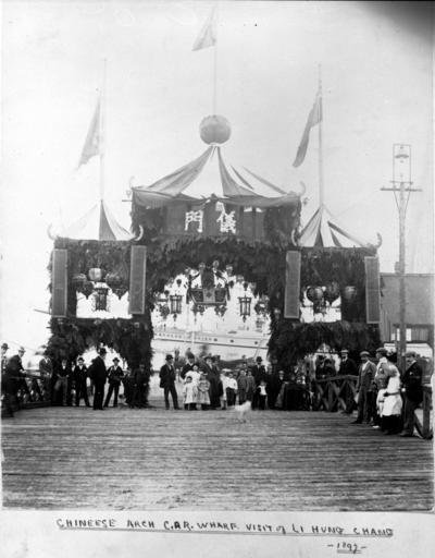 MAKE A MEME View Large Image Chinese street arch erected at the C.P.R. Station at the foot of Granville street for the visit of Li Hung Chang. The bow of the Empress of China; is in the background VPL Accession Number: 13525 Date: 1897 Photographer/Studio: Unknown ...