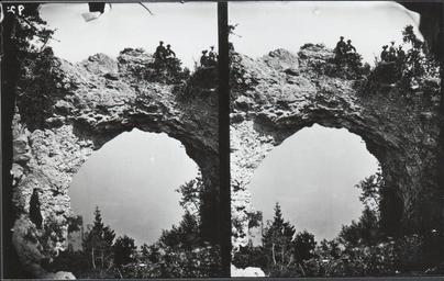 | Keywords: kalamazoo history public library photography arch rock mackinac island lake michigan outdoor blackandwhite snow black and white Arch Rock, Mackinac Island, 1873-1895. Arch Rock with five people on top and one in lower left, lake in background. KPL catalogue number P-298 Arch Rock, Mackinac Island, 1873-1895. Arch Rock with five people on top and one in lower left, lake in background. KPL catalogue number P-298 | ||||