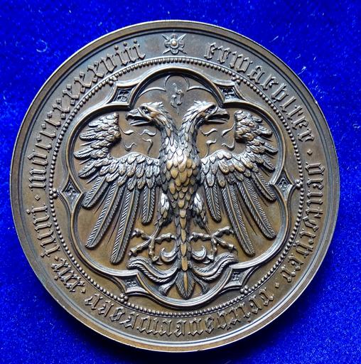 Keywords: Archduke John of Austria 1848 Frankfurt Br.- Medal, reverse.jpg en Bronze medallion d 43 mm Commemoration of the election of the German Imperial Regent by the Frankfurt Parliament after the March Revolution of 1848 Archduke John of Austria German Erzherzog Johann Baptist Joseph Fabian Sebastian von Österreich 1782 Florence Grand Duchy of Tuscany “ 1859 Graz Styria Austrian Empire a member of the House of Habsburg German Imperial Regent Reichsverweser during the Revolution of 1848-1849 Portrait l around johann · erzherzog von · österreich / Imperial Eagle surrounded by erwaehlter · deutscher · reichsverweser · xxix · iuni · mdcccxxxxviii J F 1144 Medallist K Karl Radnitzky Bildhauer und Medailleur in Wien 1818 Wien - 1901 Vienna Austria Condition Beautifully toned EXTREMELY FINE+ 1848-06-29 own Berlin-George other versions cc-by-sa-4 0 PD-old-100 PD-1923 Medals from Austria Archduke Johann of Austria 1848 medals 1848 in Frankfurt am Main |