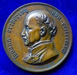 | Keywords: Archduke John of Austria 1848 Frankfurt Br.- Medal, obverse.jpg en Bronze medallion d 43 mm Commemoration of the election of the German Imperial Regent by the Frankfurt Parliament after the March Revolution of 1848 Archduke John of Austria German Erzherzog Johann Baptist Joseph Fabian Sebastian von Österreich 1782 Florence Grand Duchy of Tuscany “ 1859 Graz Styria Austrian Empire a member of the House of Habsburg German Imperial Regent Reichsverweser during the Revolution of 1848-1849 Portrait l around johann · erzherzog von · österreich / Imperial Eagle surrounded by erwaehlter · deutscher · reichsverweser · xxix · iuni · mdcccxxxxviii J F 1144 Medallist K Karl Radnitzky Bildhauer und Medailleur in Wien 1818 Wien - 1901 Vienna Austria Condition Beautifully toned EXTREMELY FINE+ 2016-03-28 15 05 38 own Berlin-George other versions cc-by-sa-4 0 PD-old-100 PD-1923 Medals from Austria Archduke Johann of Austria 1848 medals 1848 in Frankfurt am Main |