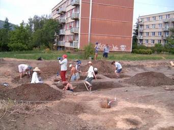Keywords: Archelogic site106.jpg en Komin archelogic site Hlavní crossing Brno Czech archelogic site were destroyed by bulding garage own I Sáček senior Archaeology in Brno-Komín
