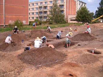 Keywords: Archelogic site112.jpg en Komin archelogic site Hlavní crossing Brno Czech archelogic site were destroyed by bulding garage own I Sáček senior Archaeology in Brno-Komín