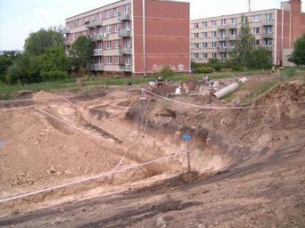 Keywords: Archelogic site124.jpg en Komin archelogic site Hlavní crossing Brno Czech archelogic site were destroyed by bulding garage own I Sáček senior Archaeology in Brno-Komín