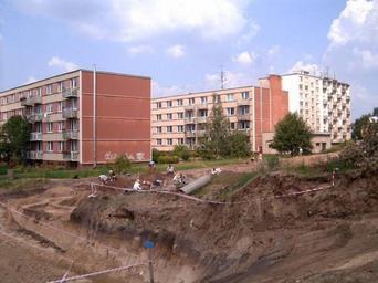 Keywords: Archelogic site128.jpg en Komin archelogic site Hlavní crossing Brno Czech archelogic site were destroyed by bulding garage own I Sáček senior Archaeology in Brno-Komín