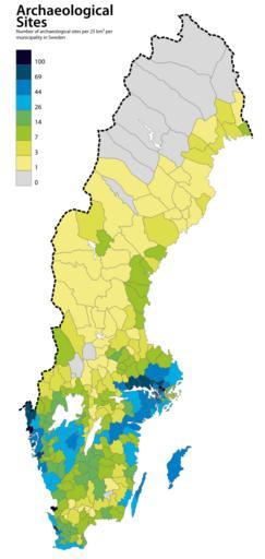 | Keywords: Archeological site density km2 Sweden.svg en Density of archaeological sites fornlämningar in Sweden Density is number of sites per 25 km2 per municipality Sveriges Nationalatlas p 76 Koyos 2010-06-05 Archaeological sites in Sweden Maps of the history of Sweden |