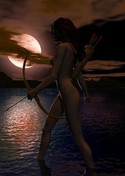 Keywords: archer bow arrow hunter woman moonlight weapon computer graphic digital art fantasy naked nude