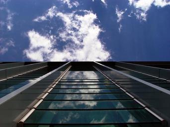 Keywords: architecture federal bank gera facade sky clouds modern steel glass abstract futuristic design