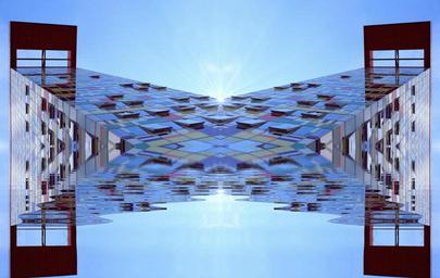 Keywords: architecture germany building home facade skyscraper modern window pattern design mirroring kaleidoscope glass window perspective düsseldorf sunbeam art game