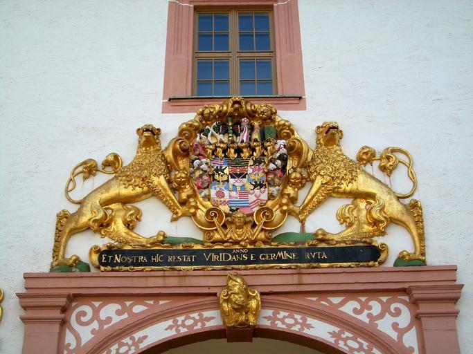 Keywords: architecture gold lion coat of arms kursachsen castle castle augustusburg saxony