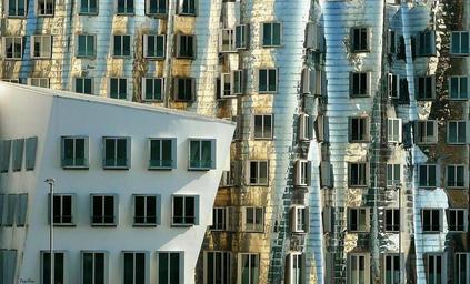 Keywords: architecture home building facade window wall modern germany glass mirror reflection metallic reflections surface mirroring metal homes düsseldorf structures urban city district cityscape construction gehry