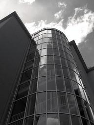 Keywords: architecture modern building facade düsseldorf window reinforced concrete black white mirroring black and white glass atmosphere