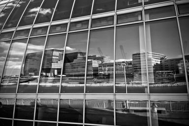 Keywords: architecture modern building home facade window front window mirroring media harbour düsseldorf glass front office building skyscraper port black white black and white