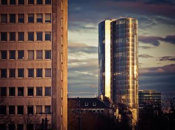 Keywords: architecture modern skyscraper building facade evening abendstimmung düsseldorf