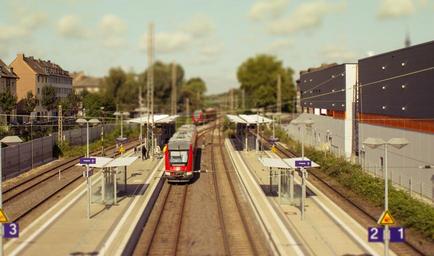 Keywords: architecture railway station train city stop building dortmund platform tram human panorama station