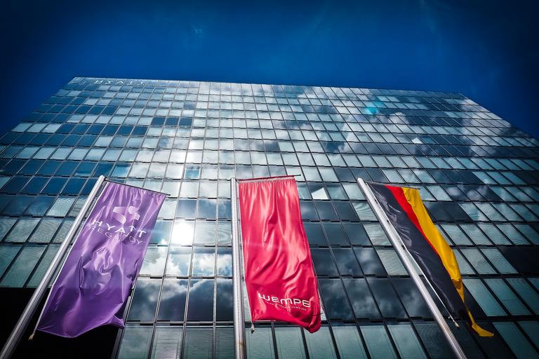 Keywords: architecture skyscraper building city glass facades facade modern structure mirroring glass front düsseldorf clouds sky glazing glass blue low angle shot media harbour hotel